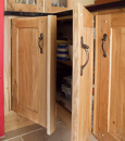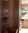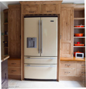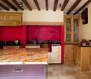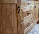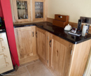 Large traditional oak kitchen with Nero Assoluto black marble and Juperano Persa worktops. Units are designed to have an 'unfitted' look as if they were bought individually and perfectly fit the space.